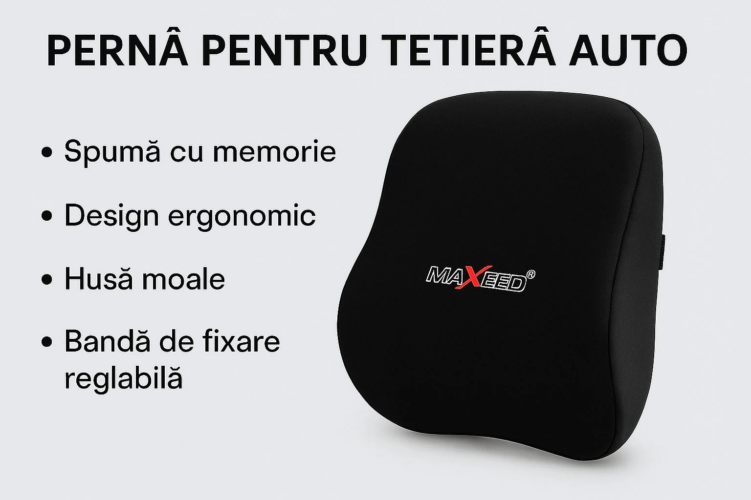 1 x Tetieră auto Maxeed (culoare neagră, cu logo brodat).