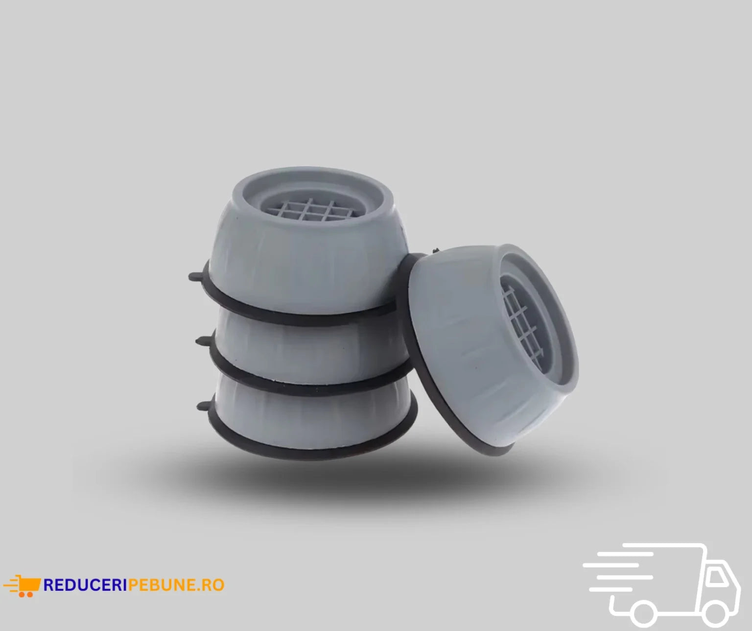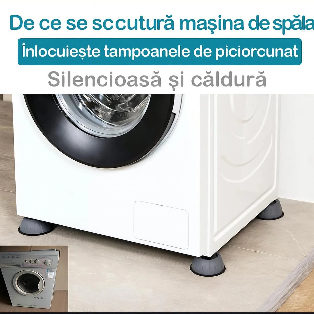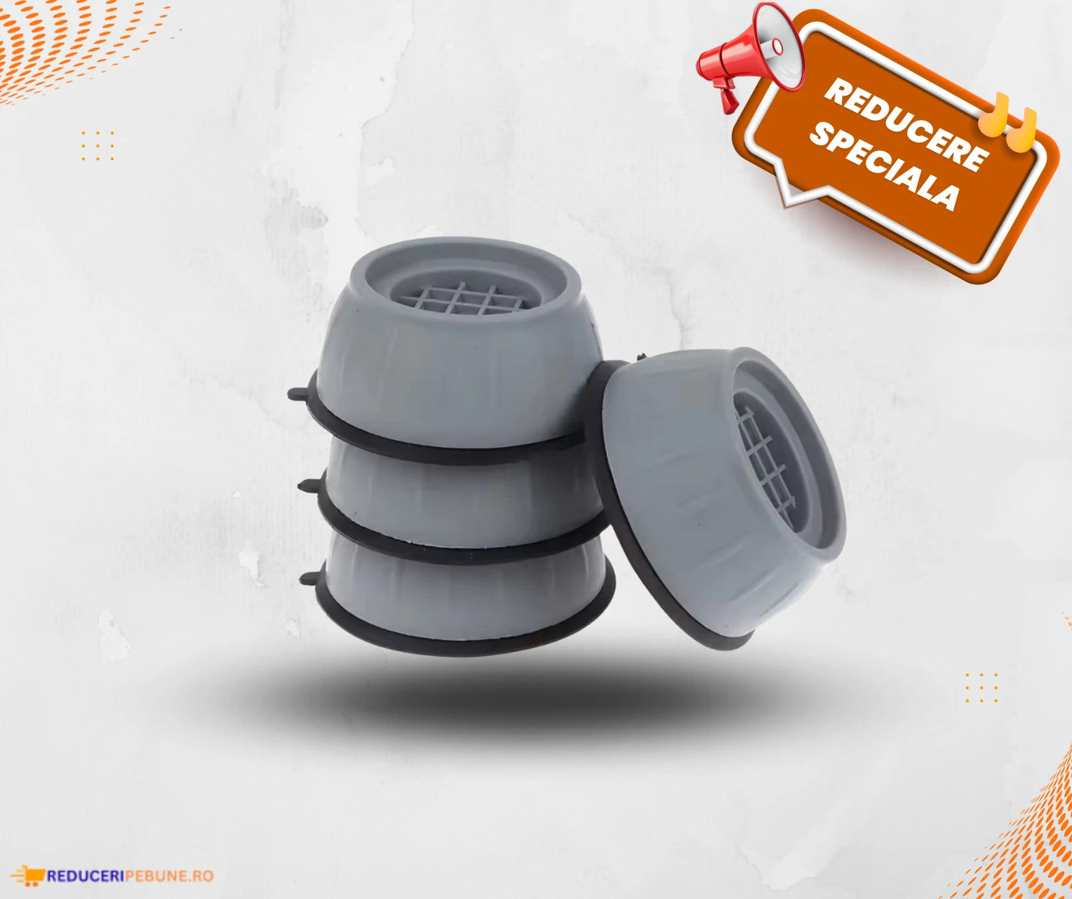 Avem solutia perfecta! Setul de 4 picioruse anti-derapante si anti-vibratie asigura protectie, stabilitate si reducerea zgomotului pentru masina de spalat, frigider, uscator si alte aparate mari.